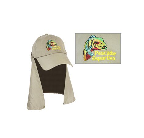 Boné para pesca, fabricado pela Jogá, com proteção de pescoço, tamanho único e ajuste em velcro.