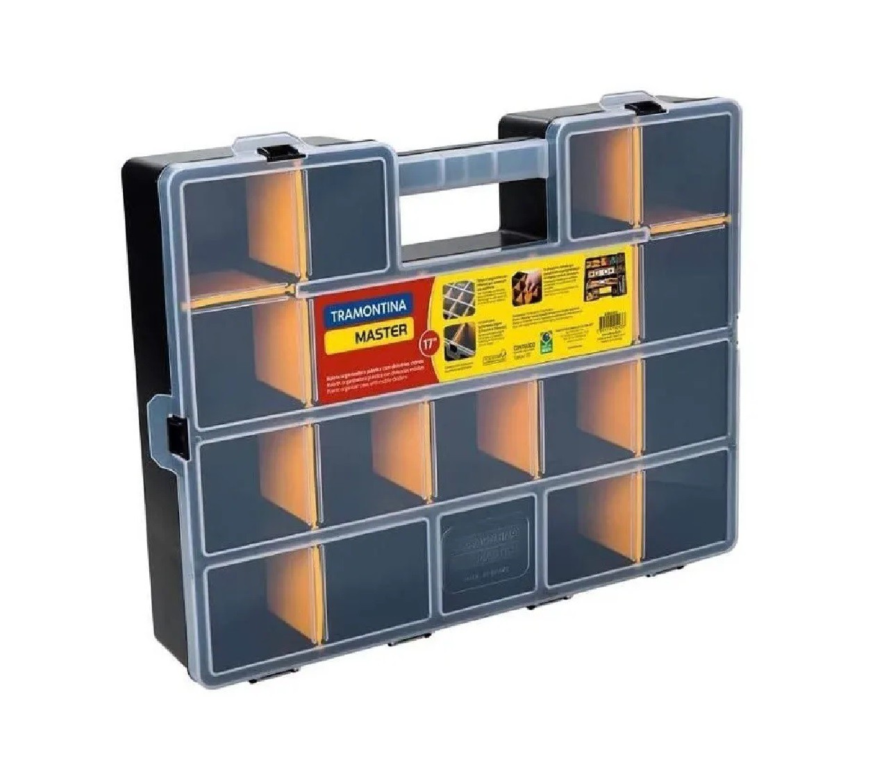 A Caixa Plástica para Ferramentas Tramontina com Trava Metálica 13 Polegadas organiza suas ferramentas e objetos.