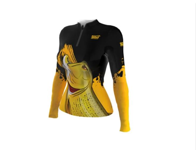 Camiseta Camisa Pesca Proteção Uv50 Mar Negro Fem Dourado