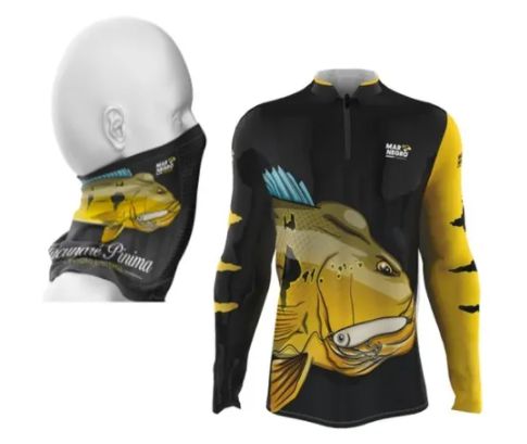 Camiseta Pesca Prot Uv Mar Negro Tucunaré Pinima + Bandana