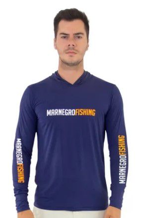 Camisa Poliamida C/ Capuz Pesca Proteção Uv Dry Fit Marinho