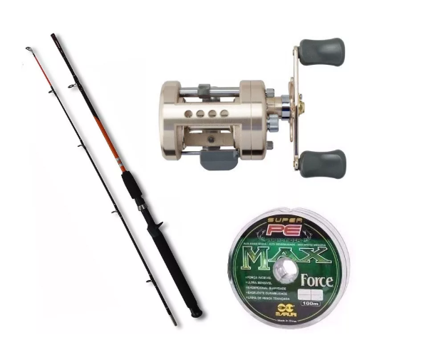 Kit Pesca Carretilha Marine Sports Fierro + Vara Ottoni + Linha Multilamento