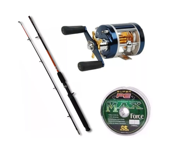 Kit Pesca Carretilha Daiwa Sports Millionaire Pro + Vara + Linha Multifilamento