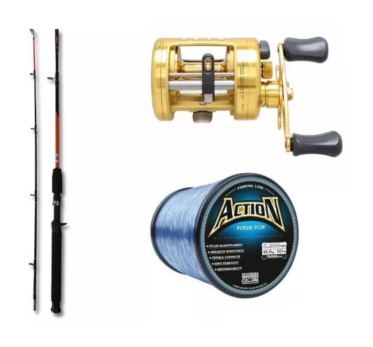 kit Pesca Carretilha MS Pacifica 400 + Linha Action Grey + Vara
