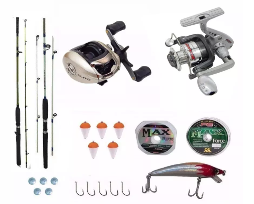 Kit Pesca Completo Carretilha Direita + Molinete + Varas + Diversos itens