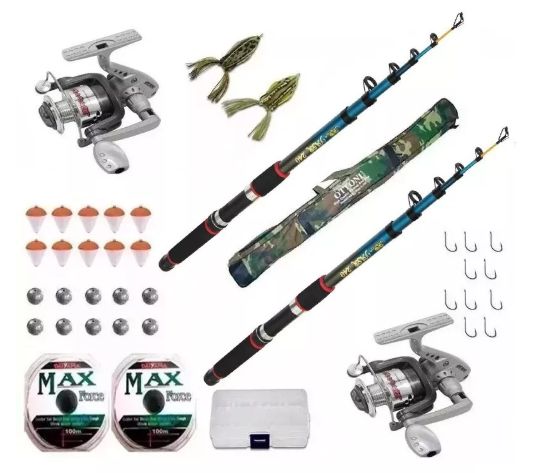 Kit para pesca leve completo, Com 2 Molinetes Star 3, Duas varas, um porta vara Ottoni para fácil deslocamento com o Kit, Além de linha, estojo organizador, chumbada, boia e anzóis!